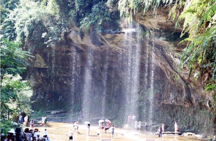團隊成員一行從觀沱下渡下船后,經(jīng)過1公里山間林蔭小道,開啟長略7公里的“中國最長石板河”踩水體驗:大家欣然下水后發(fā)現(xiàn),石板河一石沉底,托起淺淺清流,或急速、或緩流、徐徐下行、人水合一、動態(tài)接觸,讓人全新體驗感十足;兩岸奇峰夾峙、林木森森,成就天下石板河之絕唱。大家先后經(jīng)過一碗水、一顆松、碧水長灘、響灘子瀑布、出谷食坊、水簾飛虹、水舞山間、戲水戰(zhàn)場等景點,在溯溪戲水的樂園、避暑游樂的天堂中,讓人縱情山水,盡享水趣。然后,乘坐體驗飛天魔毯穿越叢山峻嶺之間,遙望七彩玻璃水滑道的蜿蜒飛馳,感受大自然鬼斧神工和天下穹隆的瑰麗之美。